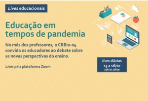 Como parte das comemorações pelo Dia do Professor, o CRBio-04 irá promover, de 13 a 16 de outubro, uma semana especial de lives abordando as