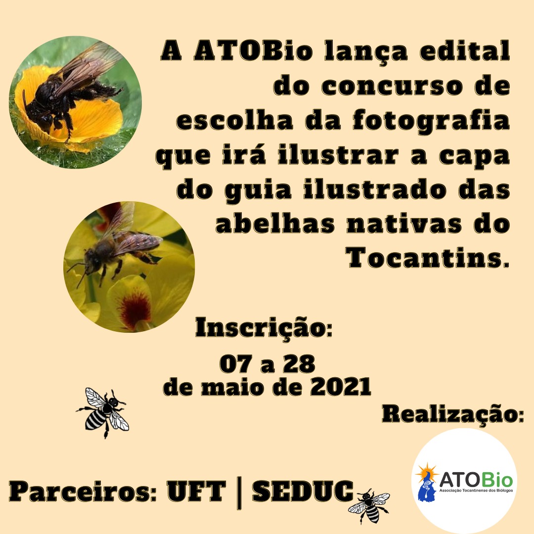 Terminam nesta sexta-feira, 28 de maio, as inscrições do concurso de fotografia promovido pela Associação Tocantinense dos Biólogos. O concurso tem por objetivo escolher a imagem de capa do Guia de Bolso Ilustrado de Abelhas Nativas do Tocantins.