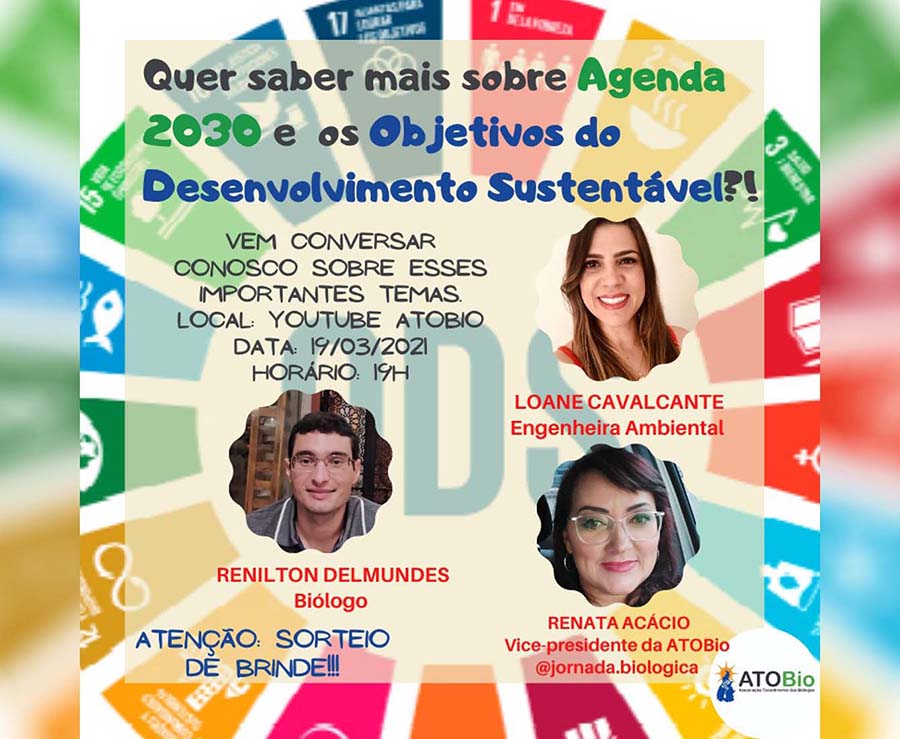 A Associação Tocantinense dos Biólogos promove, no dia 19 de março, um debate on-line sobre a Agenda 2030 e os Objetivos do Desenvolvimento Sustentável.