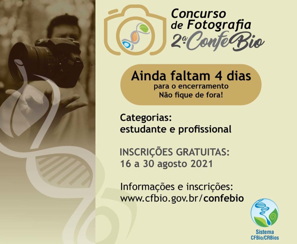 Neste ano, a ConfeBio promove seu primeiro Concurso de Fotografia com categorias para as grandes áreas de atuação do Biólogo: Meio Ambiente e Biodiversidade; Saúde; Educação; e Biotecnologia e Produção.