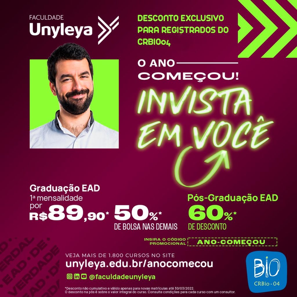 A Faculdade Unyleya, parceira do CRBio-04 no Simbio – Programa de Convênios e Parcerias, está com uma promoção especial de início de ano letivo para matrículas em cursos de graduação e pós.