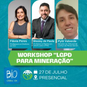 O “Workshop LGPD Aplicada a Mineração” vai trazer as empresas mineradoras para conhecer a LGPD com os principais especialistas no assunto e compreender a sua aplicação aos processos de governança e compliance. O evento acontecerá no dia 18 de agosto, de 13 às 18 horas, no CREA – Conselho Regional de Engenharia e Agronomia de Minas Gerais.