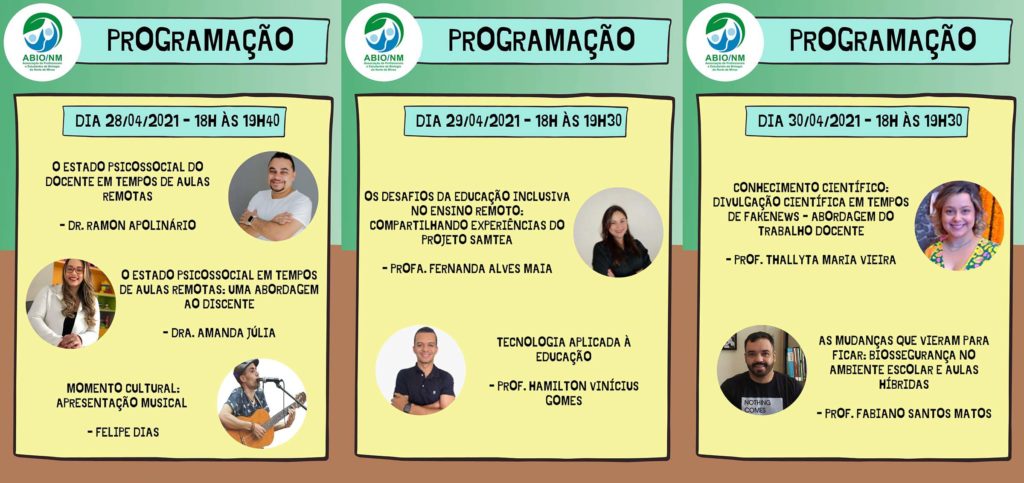 A Associação de Profissionais e Estudantes de Biologia do Norte de Minas (ABIO/NM) promove, nos dias 28, 29 e 30 de abril, o evento on-line “Interfaces da educação em tempos de pandemia: realidades e alternativas didáticas”.