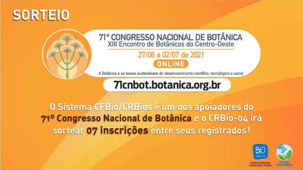 O CRBio-04 sorteou, entre os registrados que se inscreveram para participar, 07 inscrições para 71º Congresso Nacional de Botânica, que será realizado em formato on-line entre 27 de junho e 02 de julho.