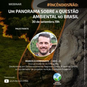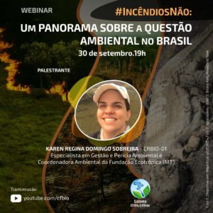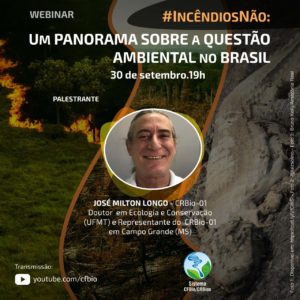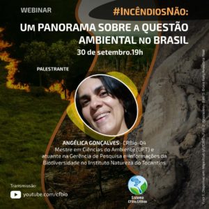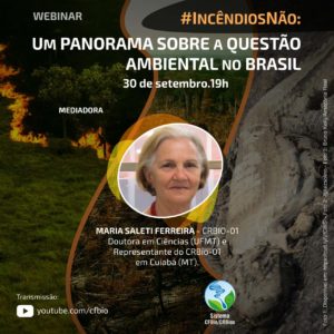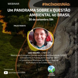 Considerando que os incêndios e o desmatamento têm atingido principalmente o Pantanal, o Cerrado e a Amazônia, o webinar “#incêndiosnão: um panorama sobre a questão ambiental no Brasil” vai trazer palestras de profissionais que atuam nos estados mais afetados, com mediação da Bióloga Maria Saleti Ferreira, doutora em Ciências (UFMT) e Representante CRBio-01 em Cuiabá (MT).
